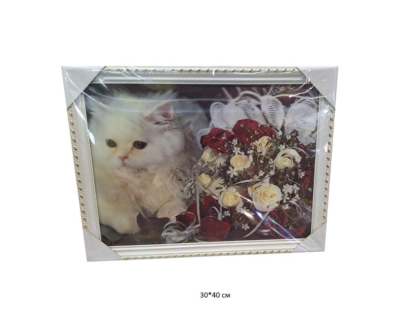 Картина объемная арт. 502833 Белый кот 3D в пак.