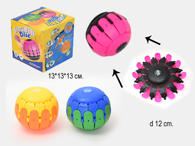 - Мяч трансформер арт. 5023 Складной, цвета микс, в коробке×Мяч трансформер арт. 5023 Складной, цвета микс, в коробкеЛетающий мяч трансформер фрисби изготовлен из мягкого гипоаллергенного пластика, самораскрывается при броске с помощью надежной стальной пружины, превращается в круглый мяч диаметром 12 см. Мяч складной фрисби в сложенном виде имеет плоскую форму, поэтому легко помещается в детский рюкзак. Увлекательная игра с мячом понравится взрослым и детям.
